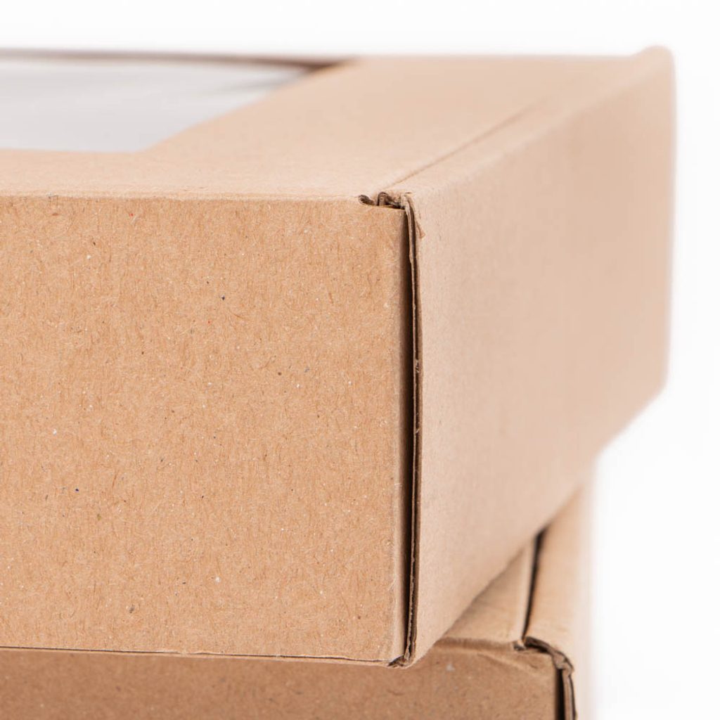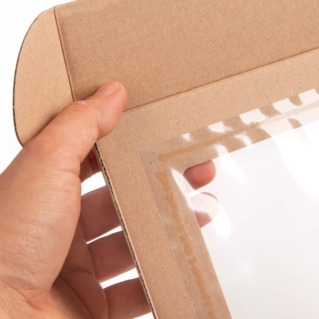 Cutiile sunt confecționate din carton ondulat în trei straturi, iar fereastra este lipită din fabrică. Fereastra este realizată din folie, nu doar din celofan subțire, așa cum se întâmplă de obicei.