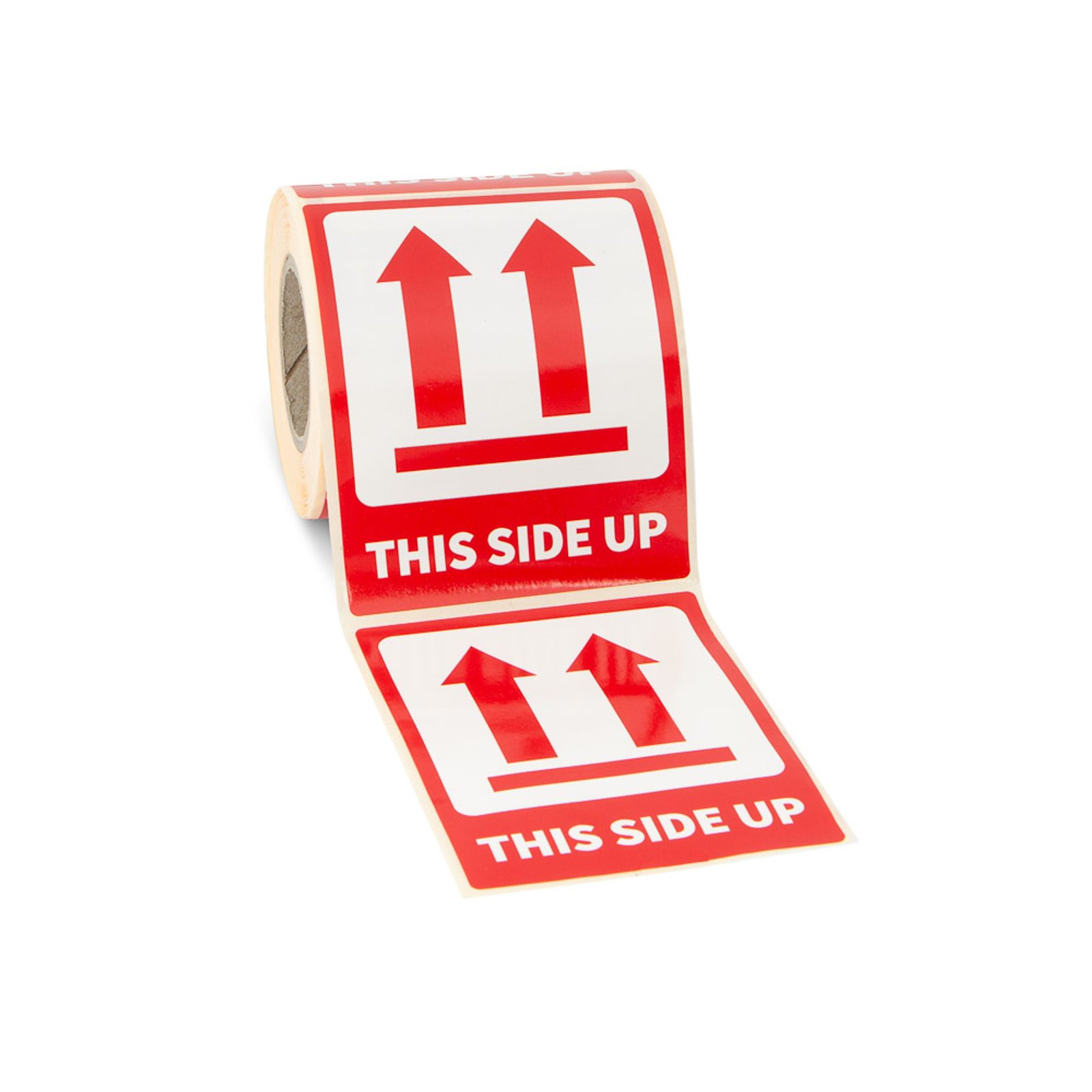 Eticheta de avertizare de interzicere a stivuirii (THIS SIDE UP) nu poate fi trecută cu vederea - este de culoare roșu aprins și este înțeleasă de toată lumea aici și în străinătate. Eticheta este utilizată pentru a marca transporturile care nu trebuie să fie răsturnate (cel mai adesea în cazul transportului de lichide). Eticheta "Nu răsturnați" se plasează pe partea laterală a cutiei de carton.