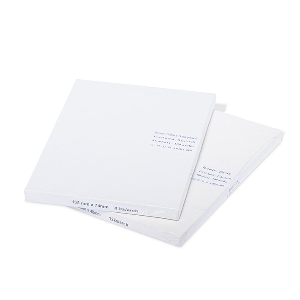 Etichetele albe, mate, auto-adezive subt distribuite pe o foaie A4 si sunt potrivite pentru orice imprimanta sau copiator. Stratul de adeziv rezistent asigura o aderenta excelenta la suprafete si de lunga durata. Etichetele sunt disponibile in diferite dimensiuni, forme si numar de etichete individuale de pe foaie.